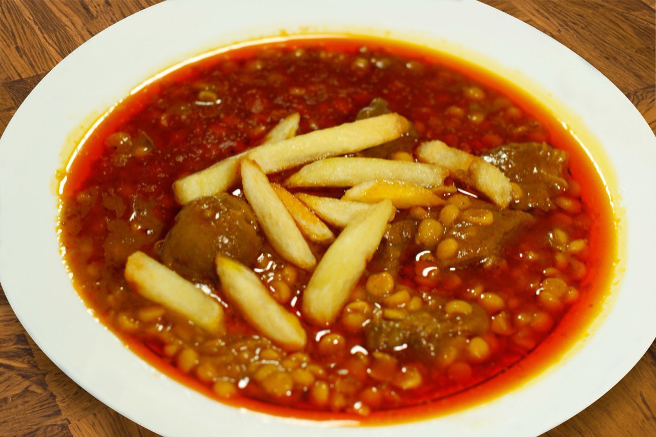 Delicious Stew Made With Soft Eggplant In A Thick And Tangy Tomato-Based Sauce- With Tender Meat And Lentils